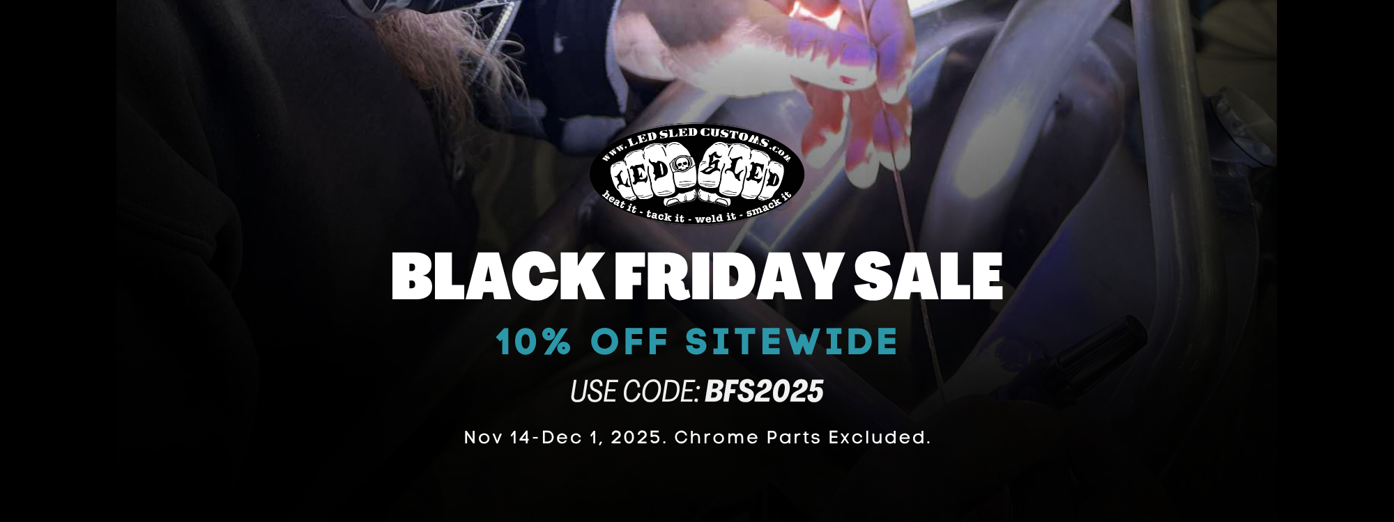 Valid November 14 - December 1, 2025 at www.ledsledcustoms.com. Chrome-finished Invaders, Springers, Panhead Covers and Sprockets not eligible for discount. Not retroactive. While supplies last.